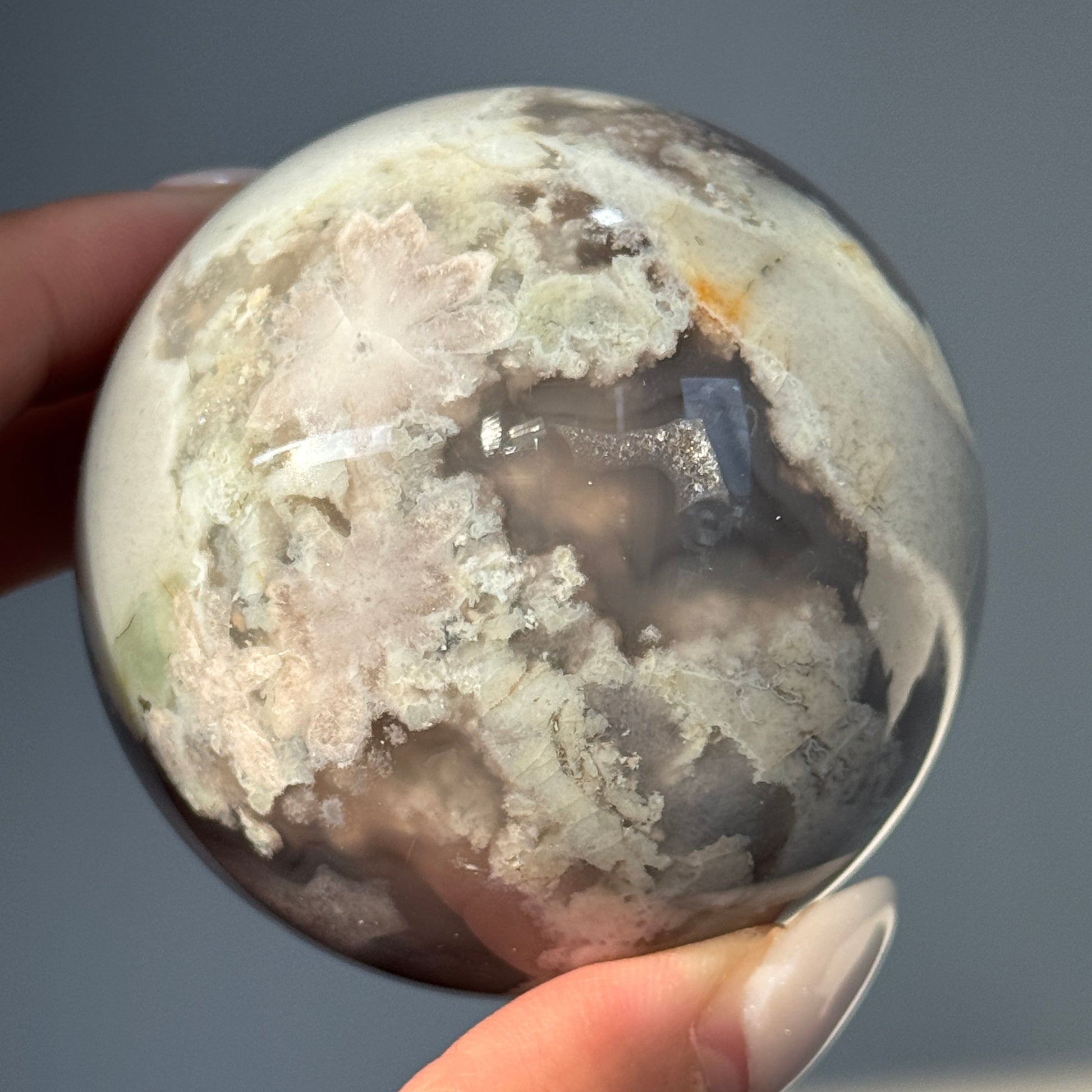 Black Flower Agate Sphere #10