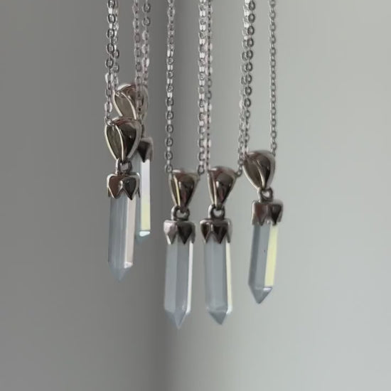 This necklace features a beautiful blue calcite pendant with a matching silver 925 chain. The chain is an 18 inch chain when worn on the last clasp and 16 inches when worn on the first clasp.