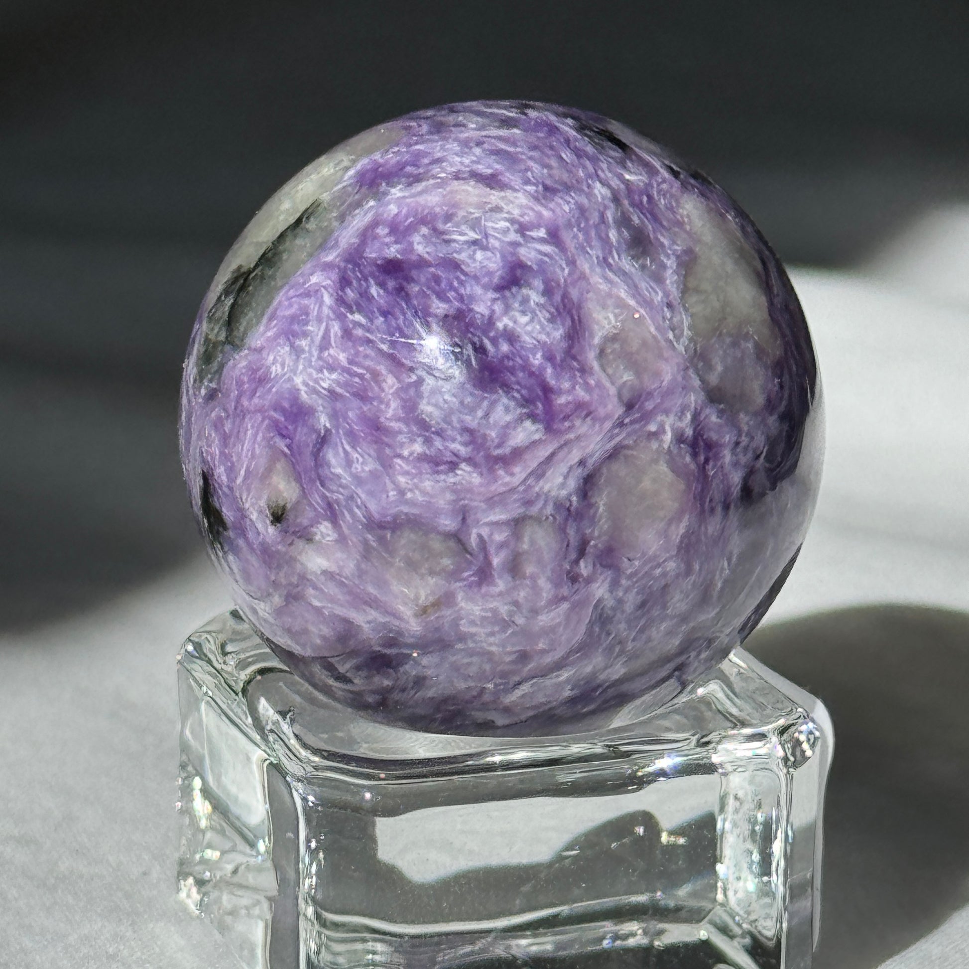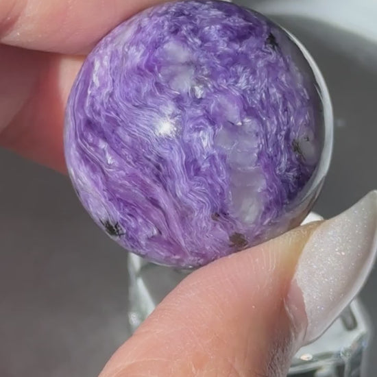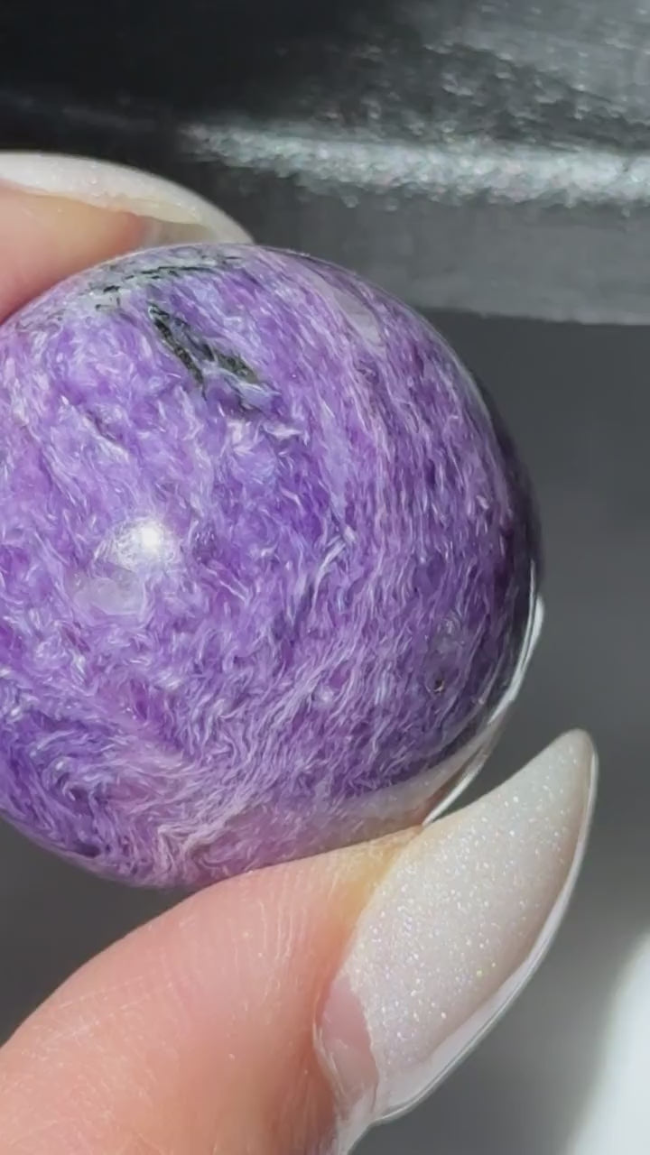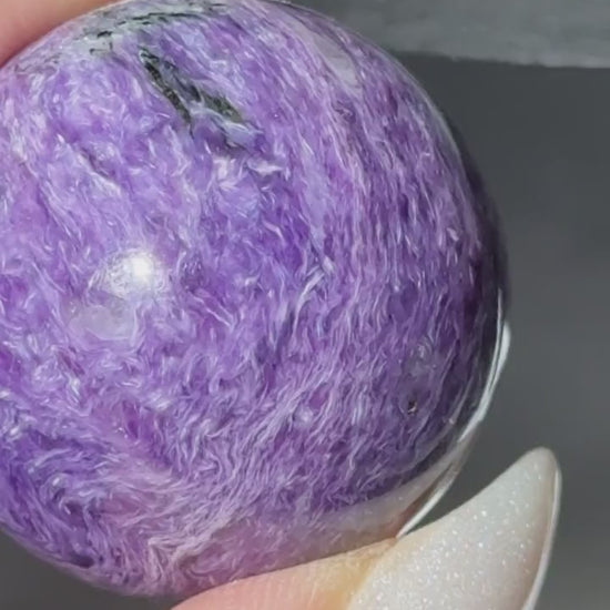 Charoite is a rare and beautiful gemstone with a swirling, fibrous appearance. It is found in only one place in the world, the Chara River Valley in Siberia, Russia. Charoite is known for its rich purple color, which can range from light lavender to deep violet. It is also known for its unusual luster, which is often described as pearly or silky.