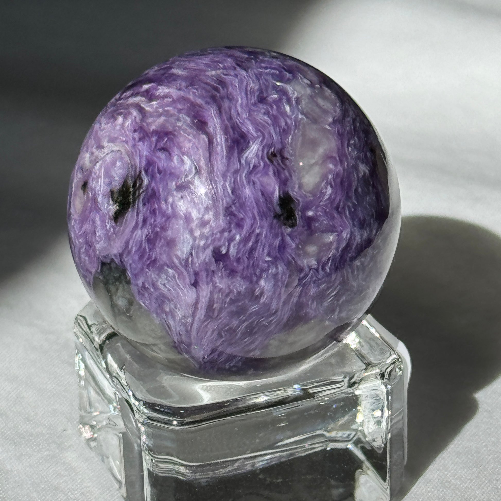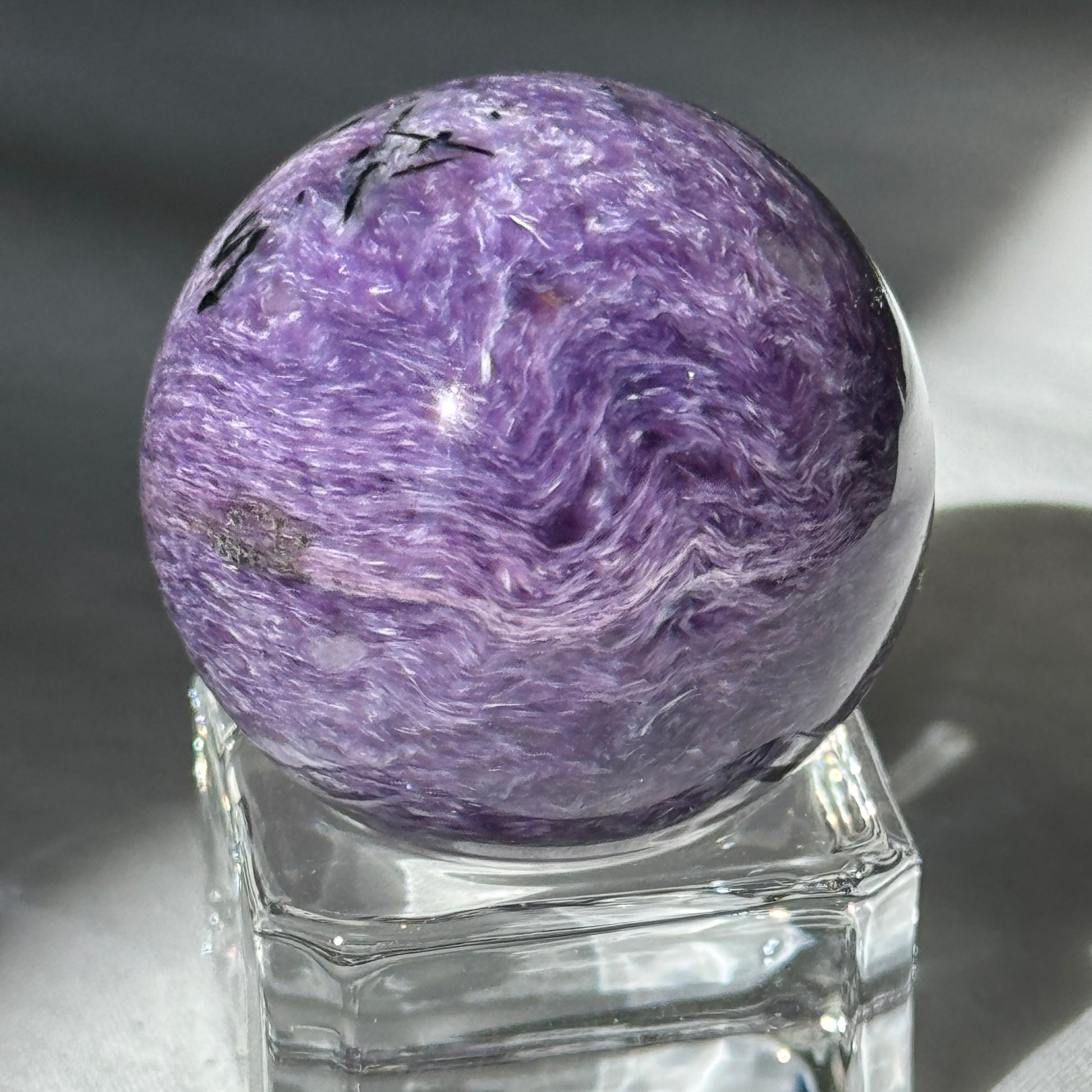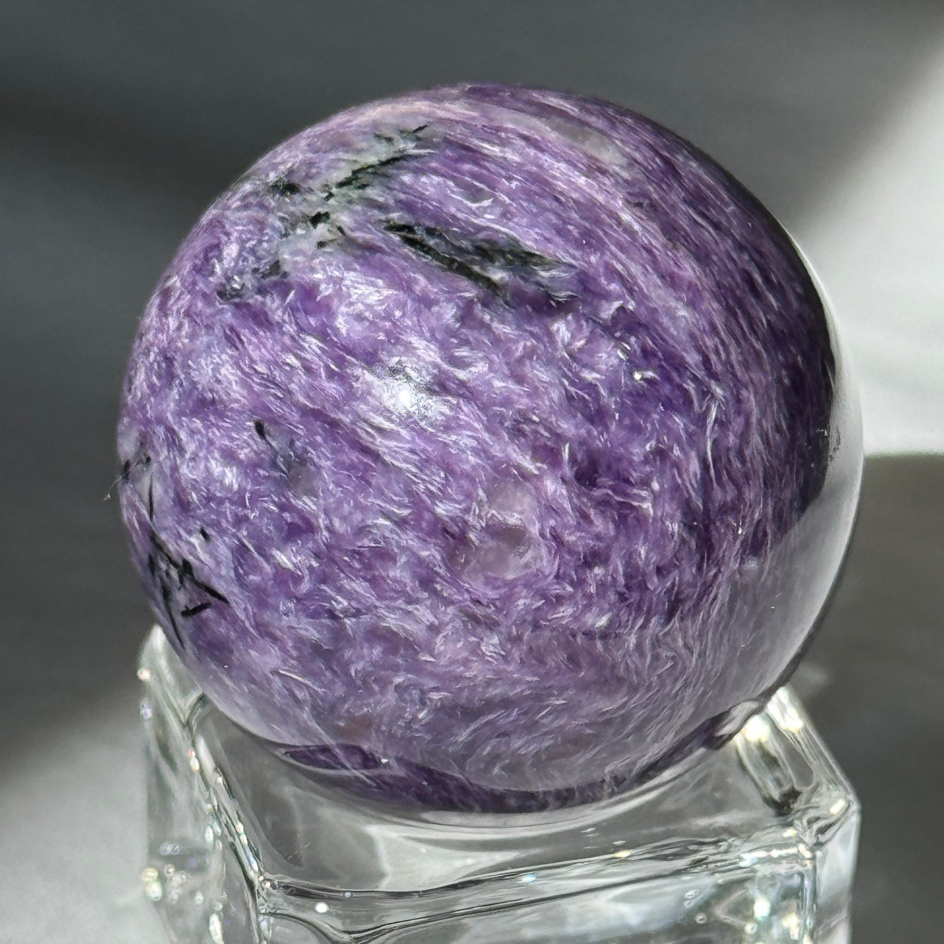 Charoite is a rare and beautiful gemstone with a swirling, fibrous appearance. It is found in only one place in the world, the Chara River Valley in Siberia, Russia. Charoite is known for its rich purple color, which can range from light lavender to deep violet. It is also known for its unusual luster, which is often described as pearly or silky.