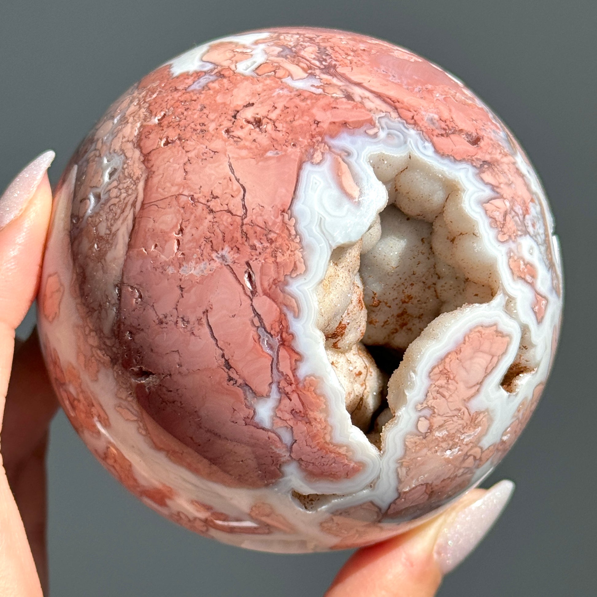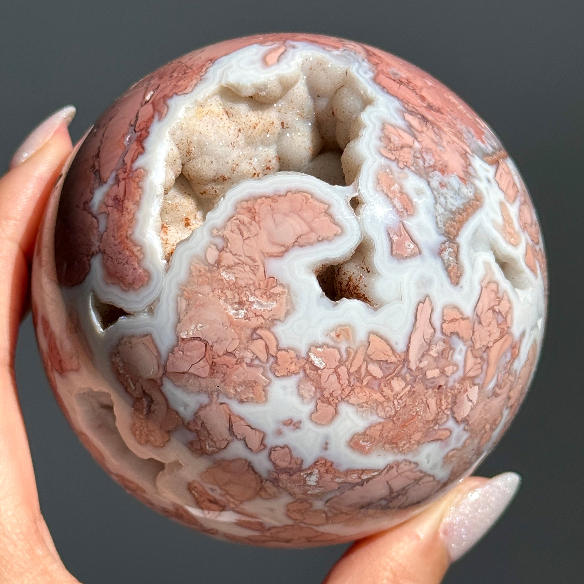 Cotton candy agate is a recent discovery from Chihuahua, Mexico, and it's quickly become a favorite among gemstone enthusiasts and lapidary artists. As its name suggests, this agate boasts a dreamy palette of soft pinks, peaches, and whites, reminiscent of everyone's favorite childhood treat. The stone's captivating beauty comes from its unique composition. It's primarily formed of brecciated jasper, a type of jasper made up of angular fragments of the mineral cemented together. These fragments, in various shades of pink, are then enveloped in swirls of milky agate and druzy quartz, creating a mesmerizing contrast of textures and colors.