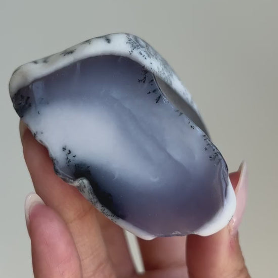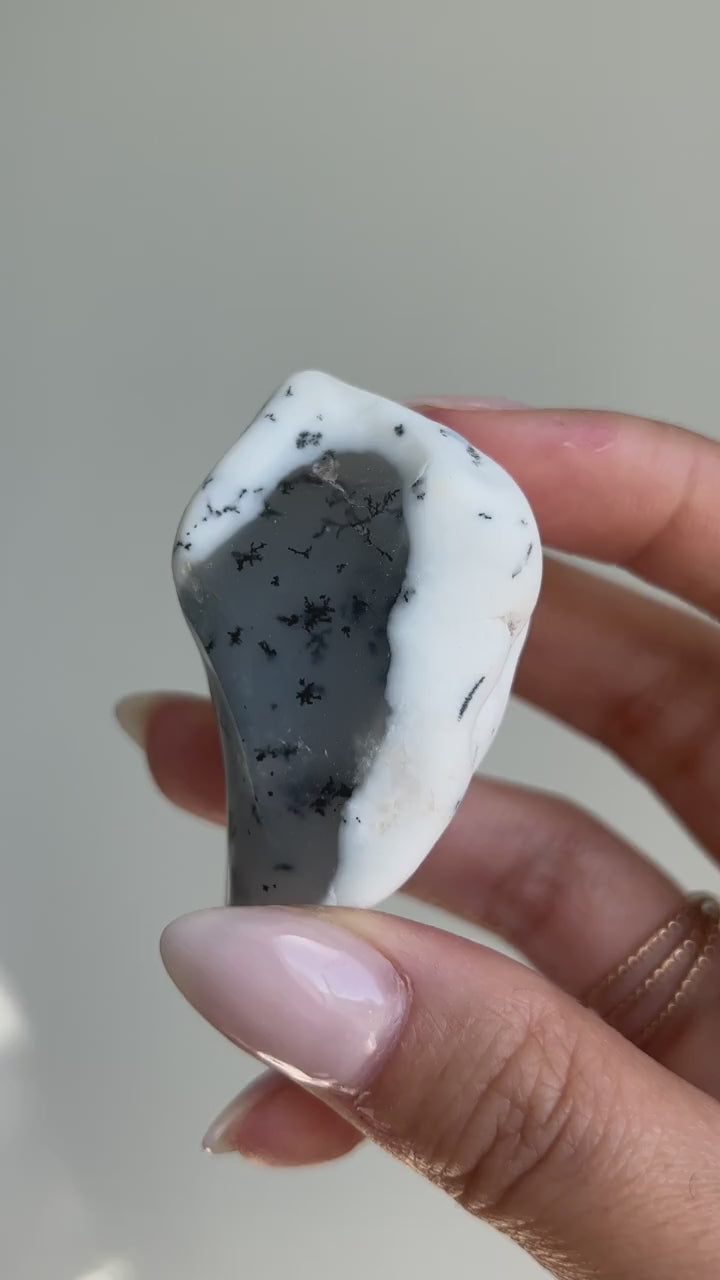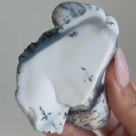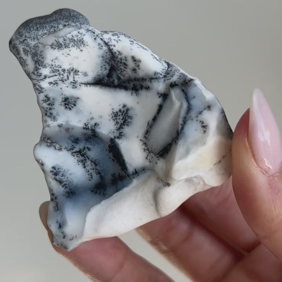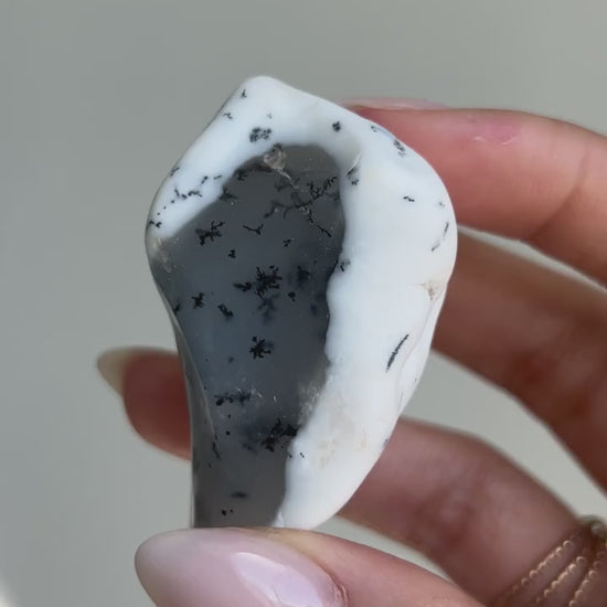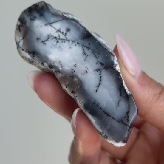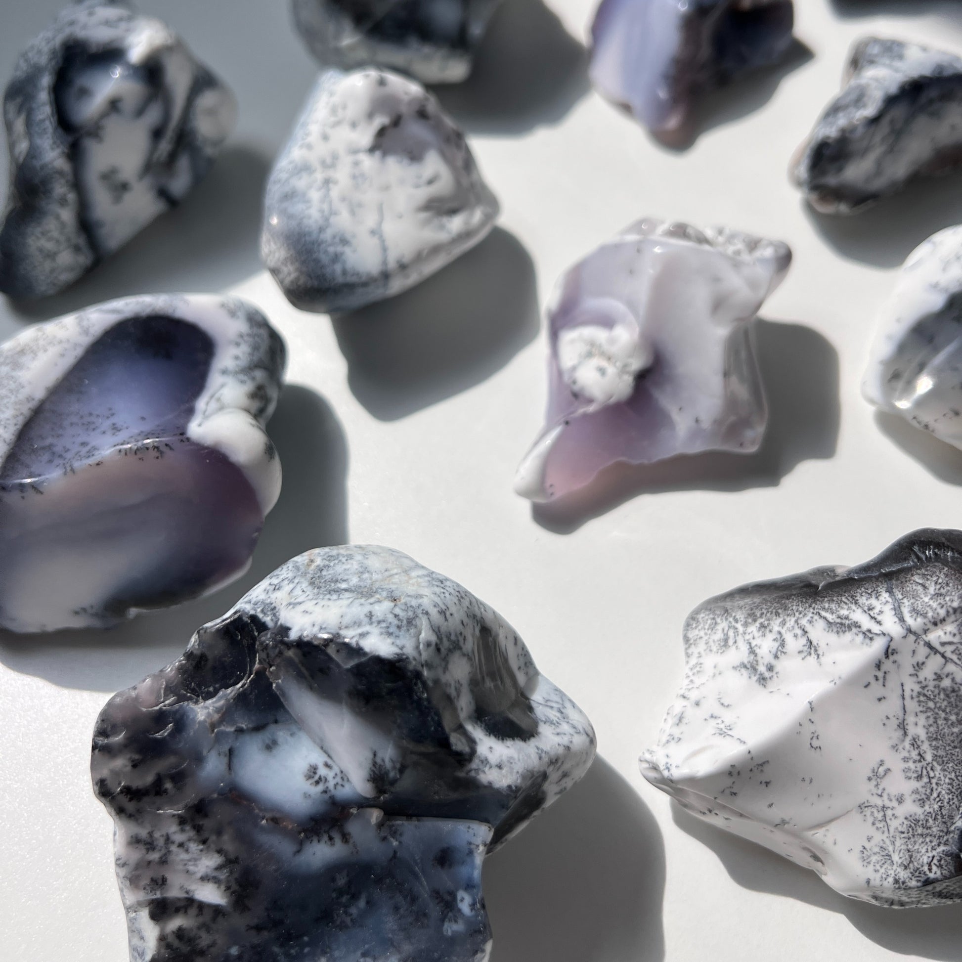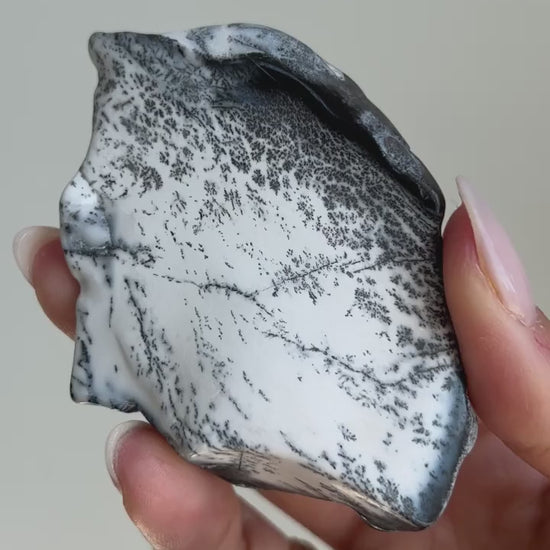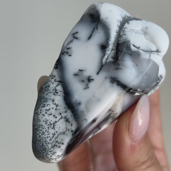 The term "dendritic" refers to the branching patterns that are visible within the opal. These patterns are created by the presence of iron and manganese oxide minerals that form during the opal's formation process.