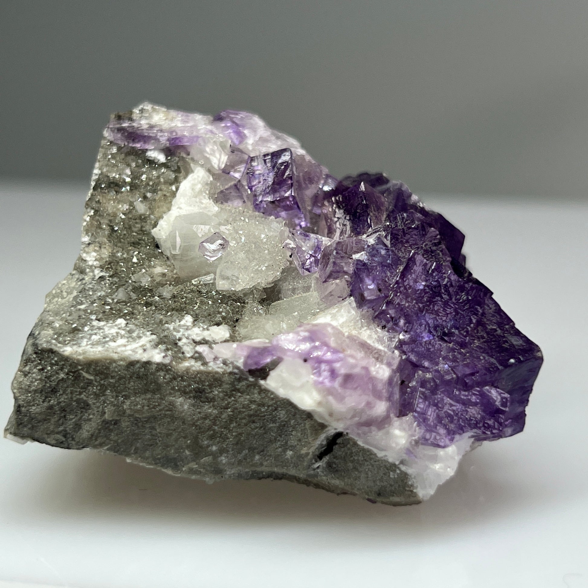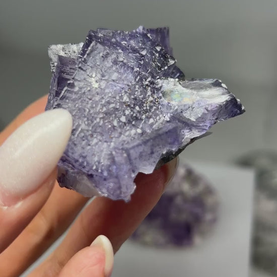 What makes the Elmwood fluorite even more desirable is its unique fluorescence. When exposed to ultraviolet (UV) light, particularly long-wave UV (black light), many specimens from the Elmwood mine exhibit vivid fluorescence, often in shades of purple, blue, or even multicolored displays. This fluorescence adds an extra dimension of beauty to the already stunning fluorite crystals.