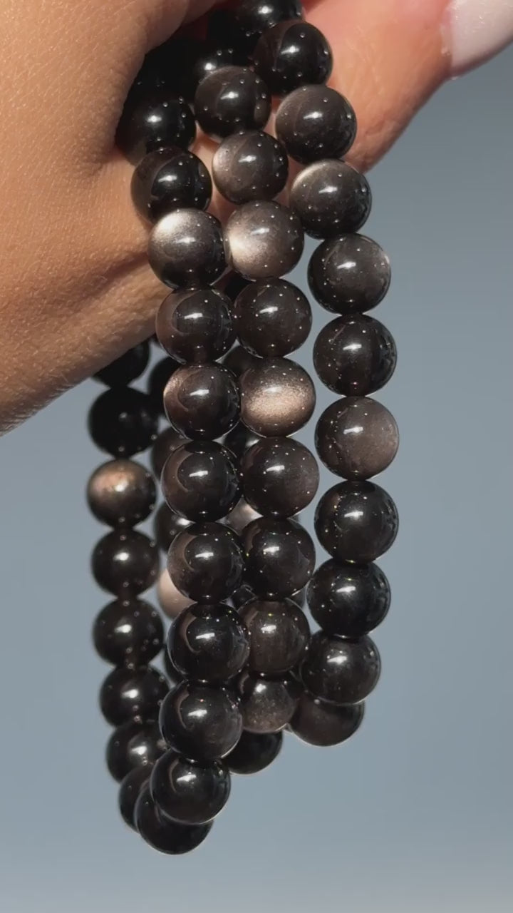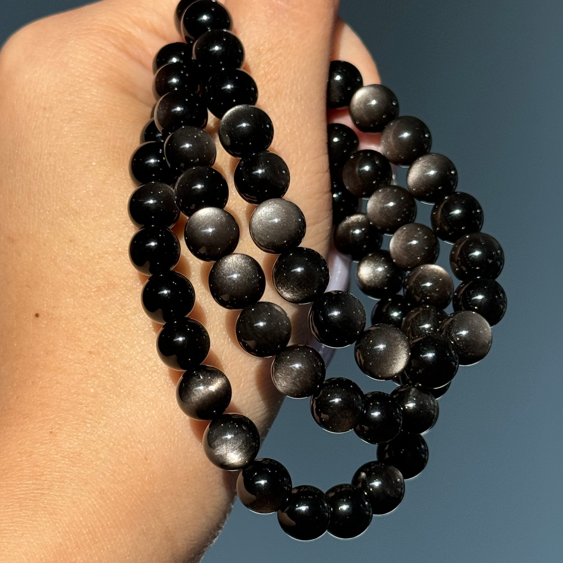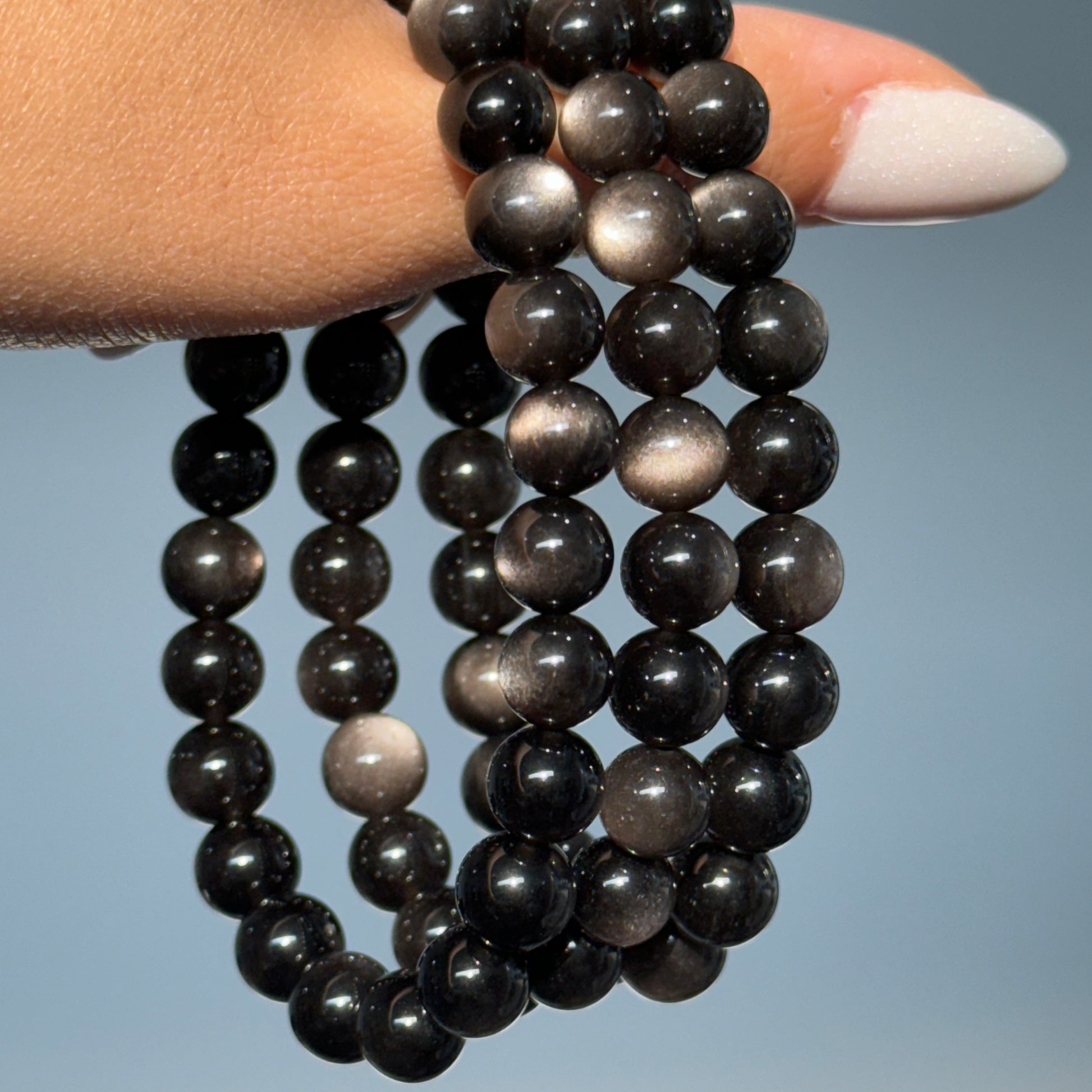 HQ Silver Sheen Obsidian Bracelets (various bead sizes)