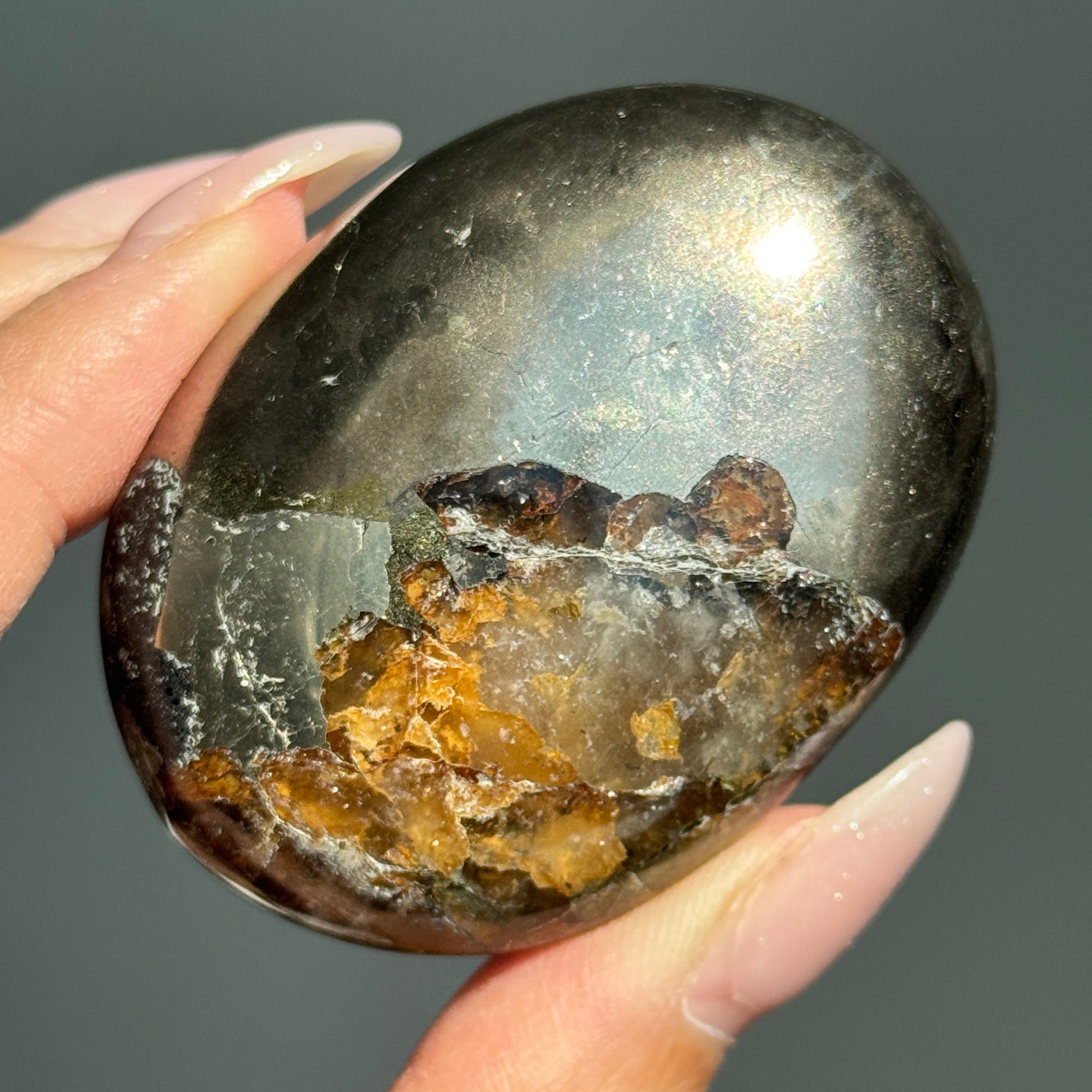 Lions Gate is a 2024 recent find fron India and is composed of mixed materials including golden healer, pyrite, hematite and other quartz inclusions.