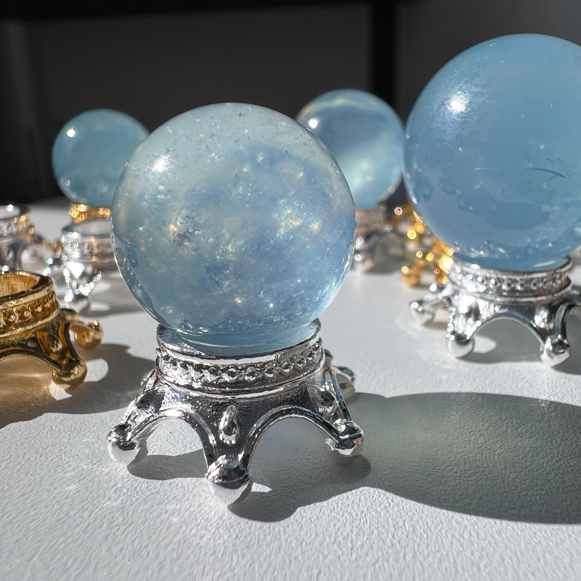 This sphere stand is perfect for all the mini spheres that are too small for the small glass sphere stand. This is the smallest size possible!
