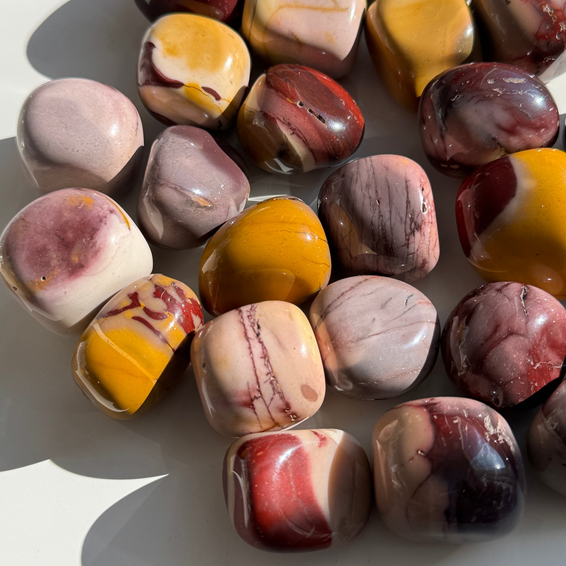 Our Mookaite tumbles are the perfect pocket stone size to carry around during the day!
