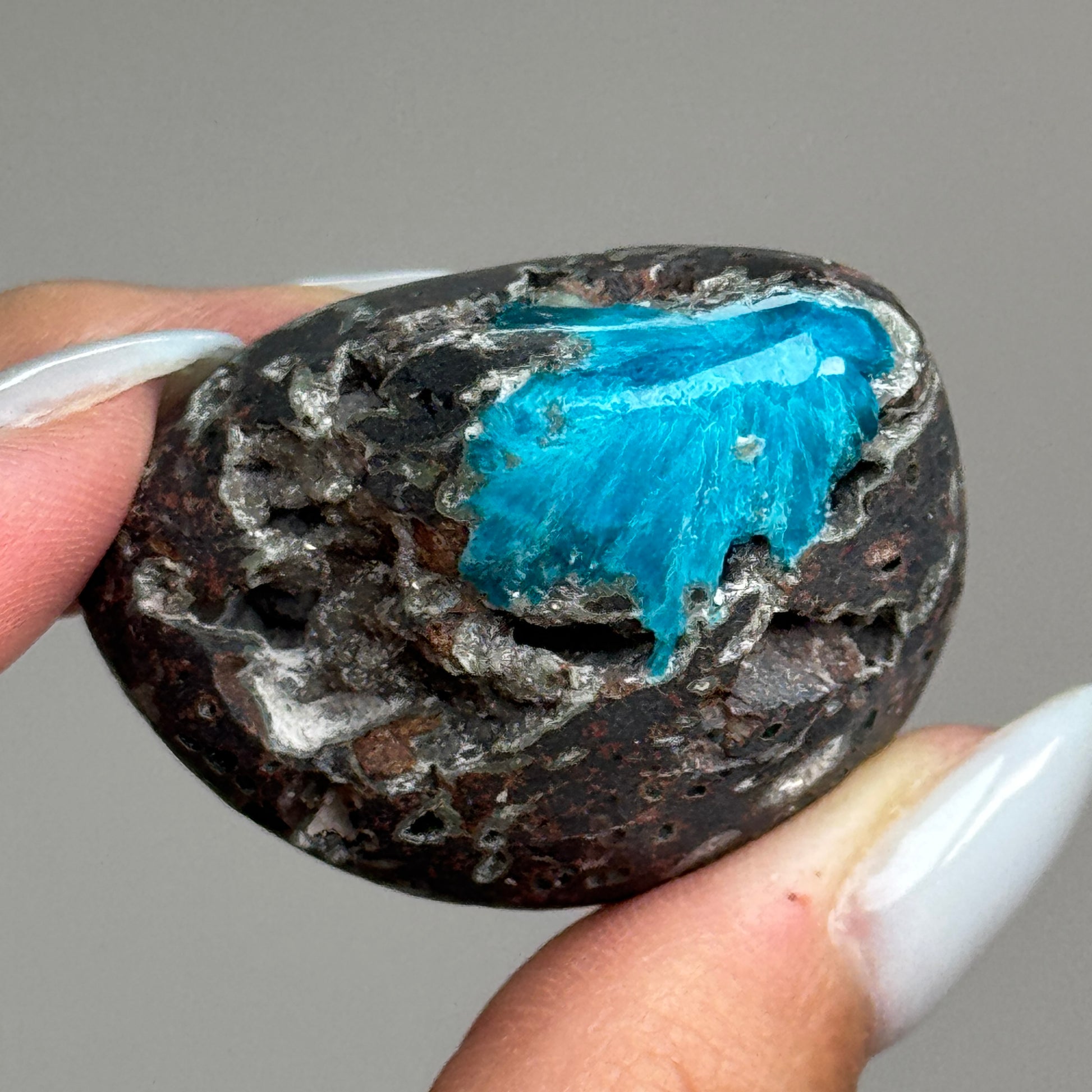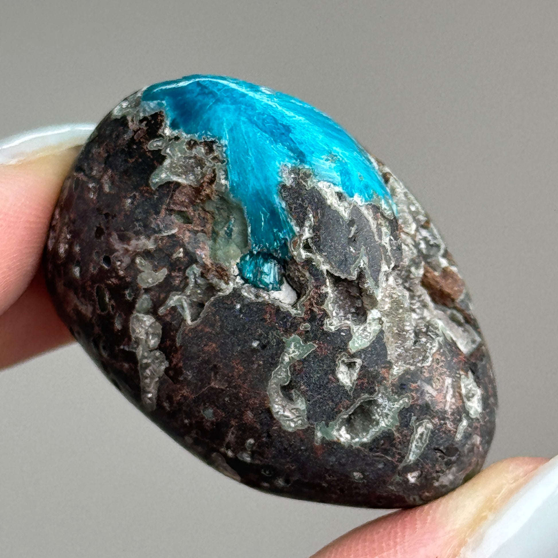 Our polished Cavansite specimens have undergone a careful polishing process to enhance their natural luster and showcase the intricate details of their crystal formations. The smooth, reflective surface highlights the vibrant blue color and the delicate, radiating structure of the Cavansite.