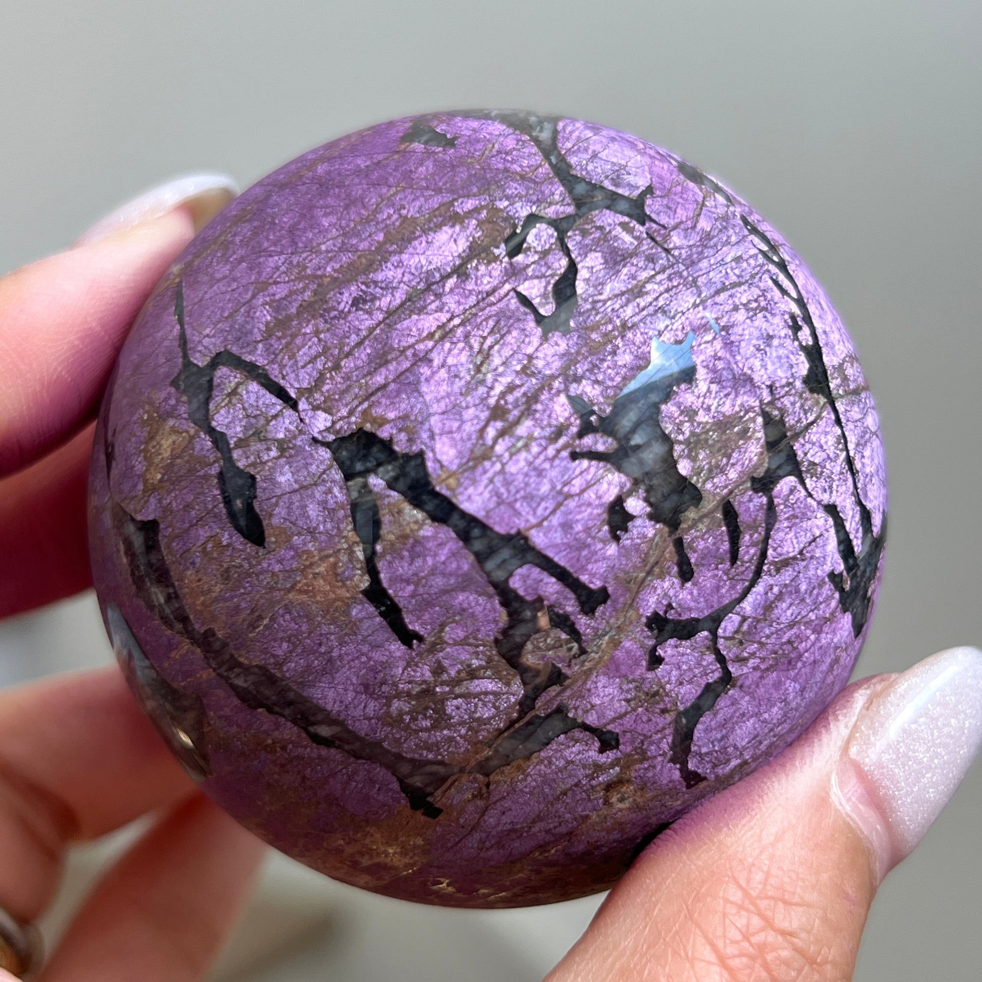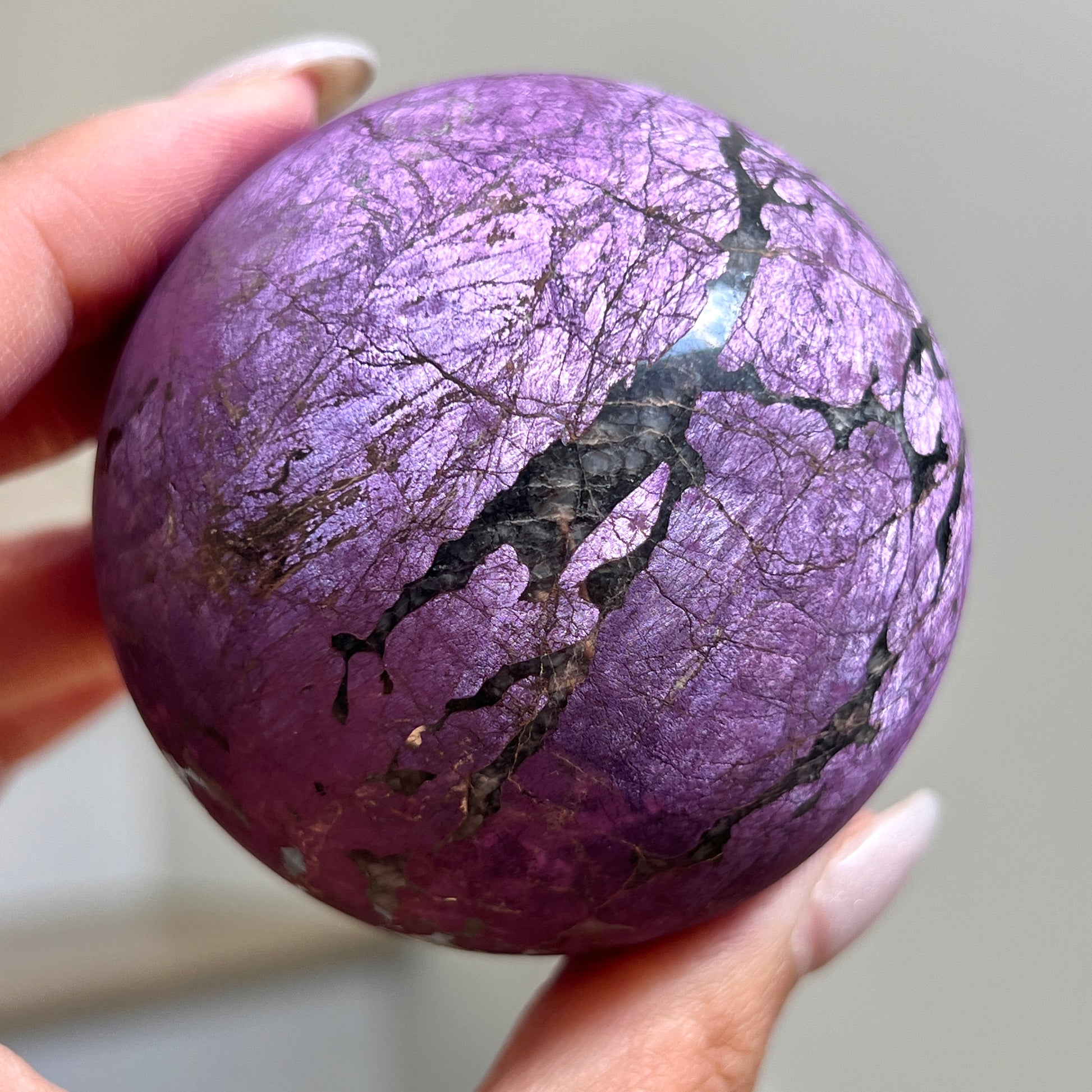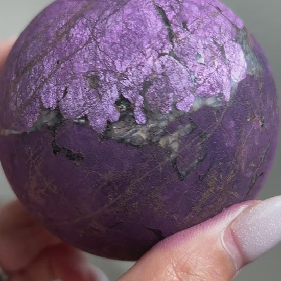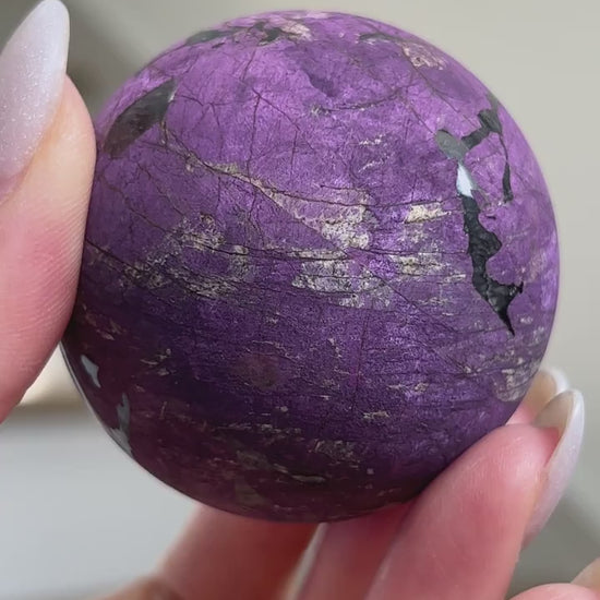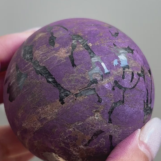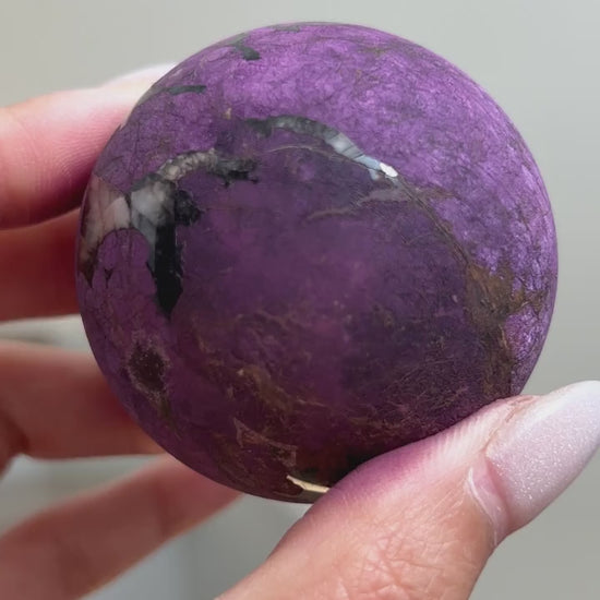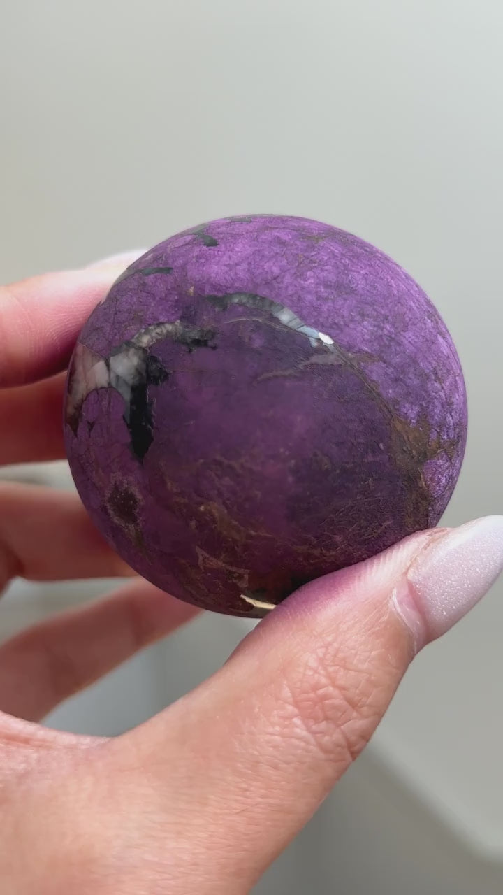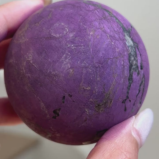 Purpurite is notoriously known to be too soft of a material to polish and is often only available in rough/raw form. We were lucky enough to grab a batch of these top quality Purpurite Spheres ?? Will we be hoarding some for our personal collection? YES, yes we will!