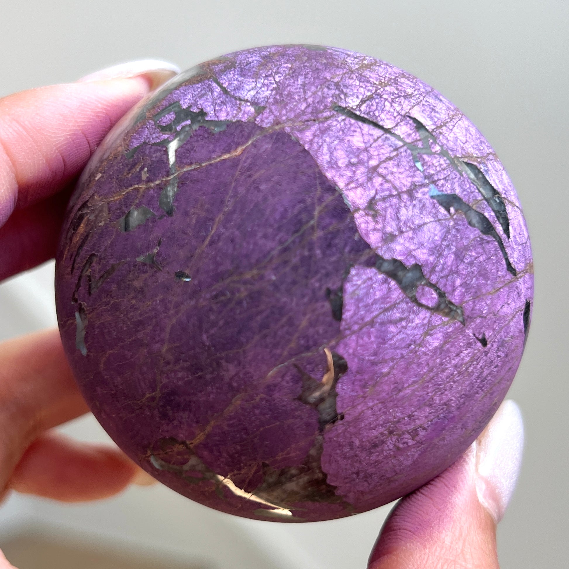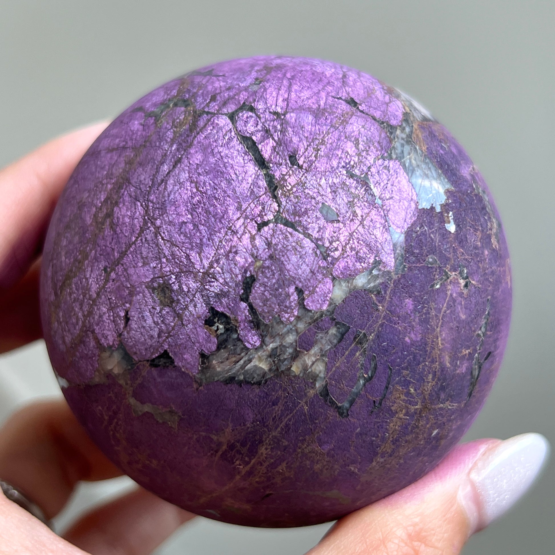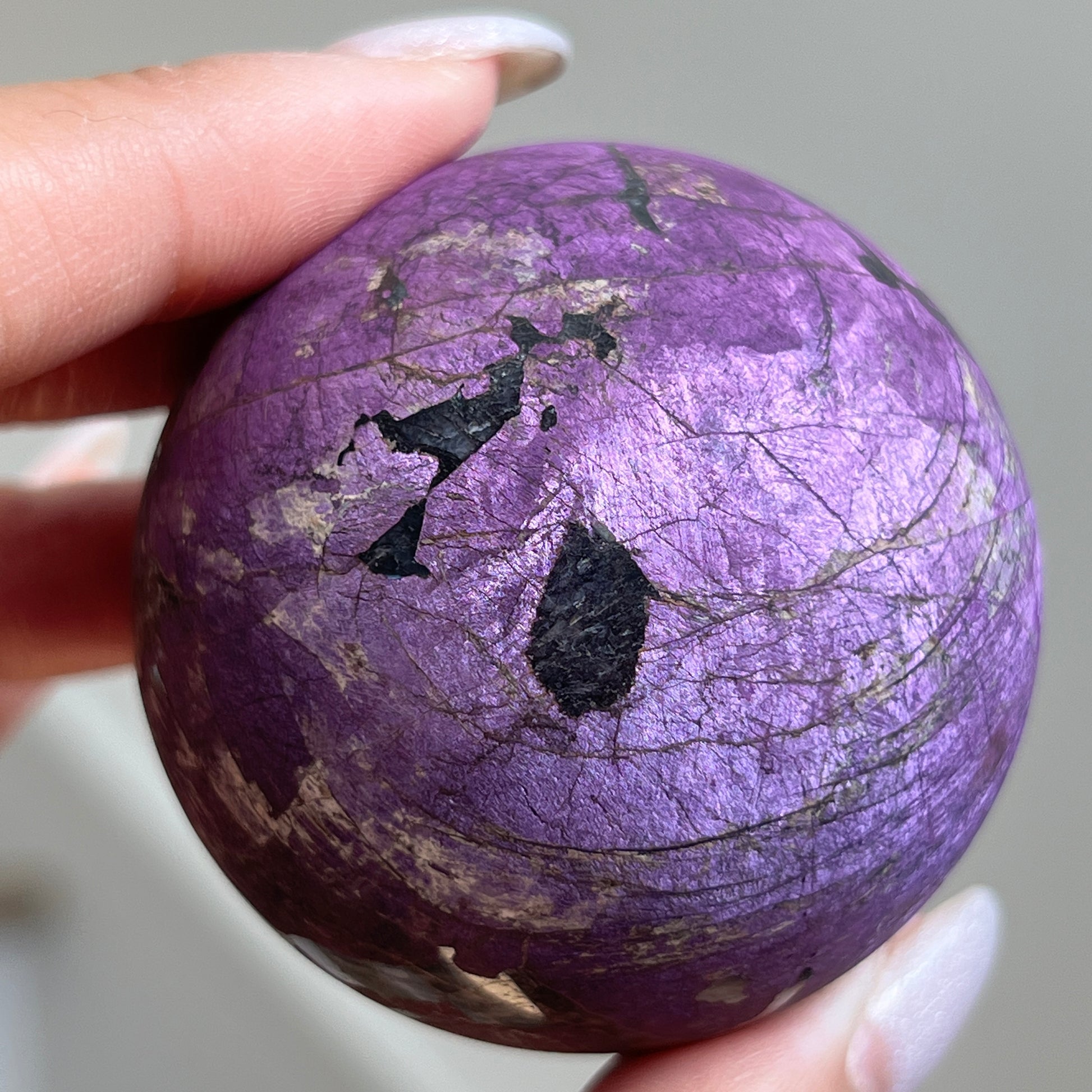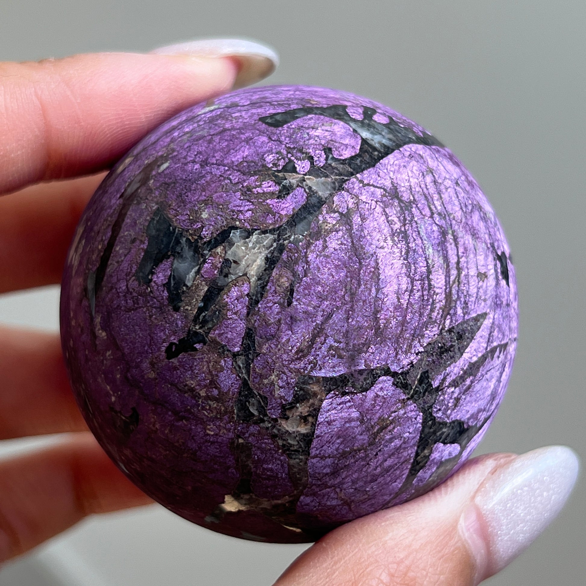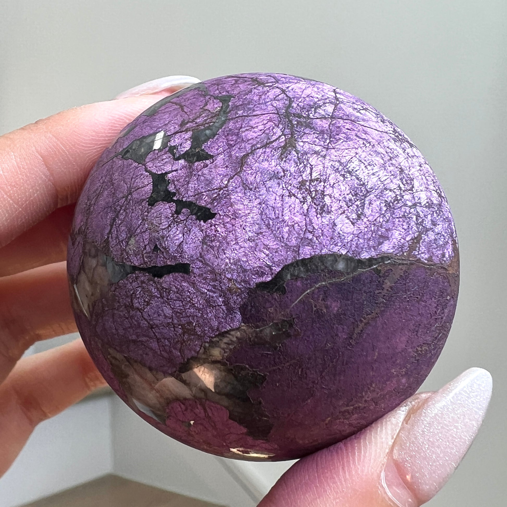 Purpurite is notoriously known to be too soft of a material to polish and is often only available in rough/raw form. We were lucky enough to grab a batch of these top quality Purpurite Spheres ?? Will we be hoarding some for our personal collection? YES, yes we will!