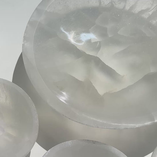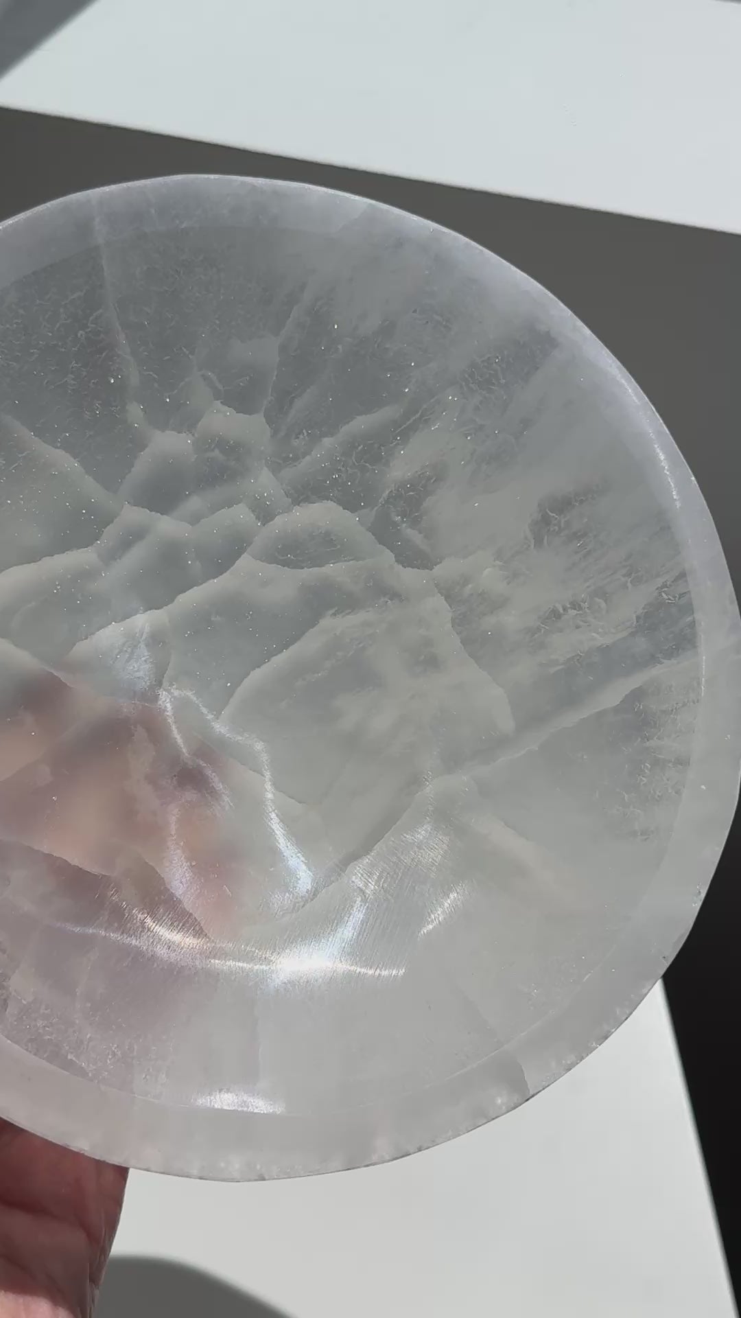 These are 8 inch wide round selenite bowls. The quality is amazing and they’re very sparkly!