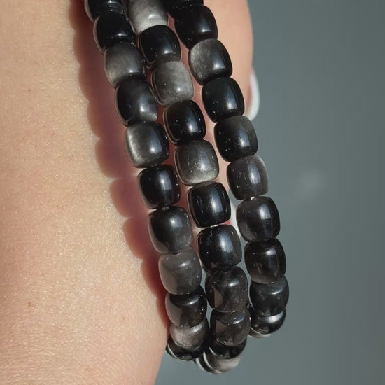 Silver Obsidian Long Bead Bracelets