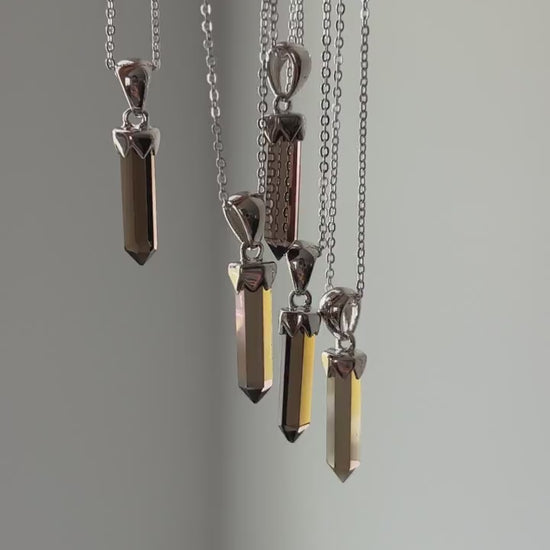 This necklace features a beautiful smoky quartz pendant with a matching silver 925 chain. The chain is an 18 inch chain when worn on the last clasp and 16 inches when worn on the first clasp.
