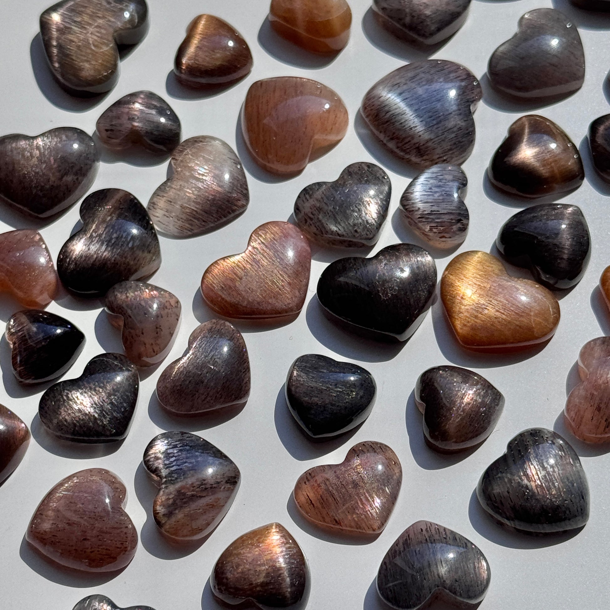 Tanzanian Lattice Sunstone Moonstone Mini Heart (set of 2)